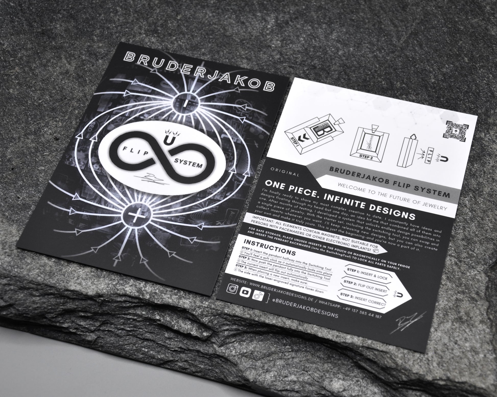 This precision crafted stainless steel pendant is the heart of the Flip System, designed to hold interchangeable inserts you can swap anytime using the Switching Tool. Every pendant comes with a unique production number, engraved directly inside the piece, and an official Certificate of Authenticity showing its exact number in the series.